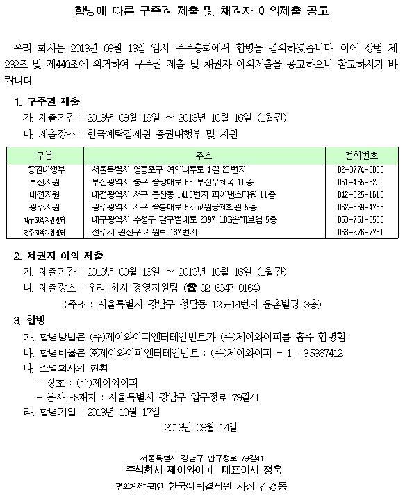 (주주 공지 사항) 합병에 따른 구주권 제출 및 채권자 이의제출 공고