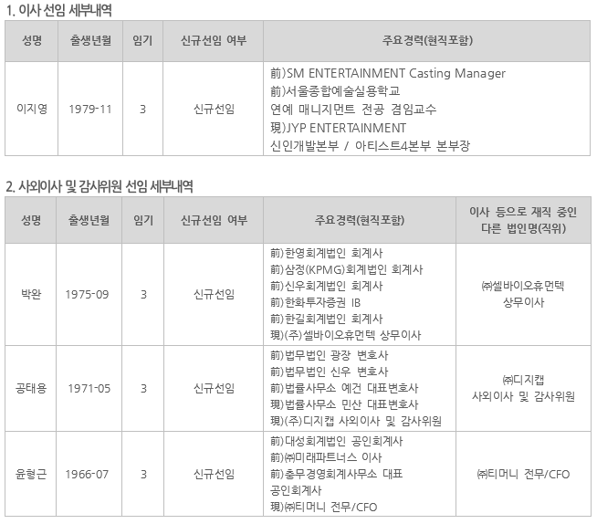 - 법령에서 정한 취업제한 사유 등 이사·감사 결격 사유의 유무 : ‘해당사항 없음’