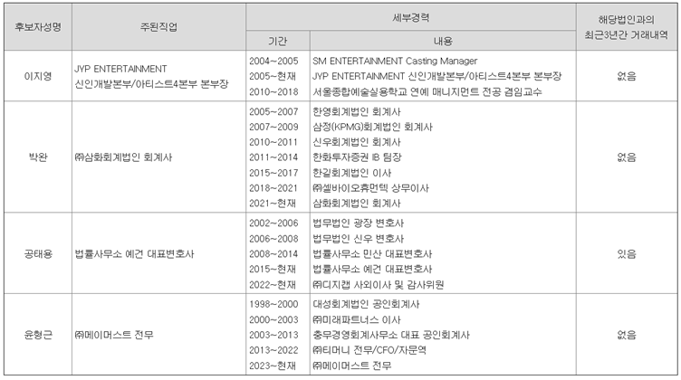 2. 이사 후보자의 주된 직업ㆍ약력ㆍ해당법인과의 최근3년간 거래내역 (안건 : 2호,3호 의안)