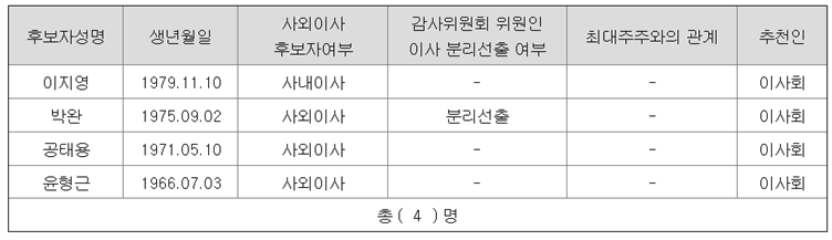 제2호 의안 : 이사 선임의 건 (사내이사 1명, 사외이사 3명)